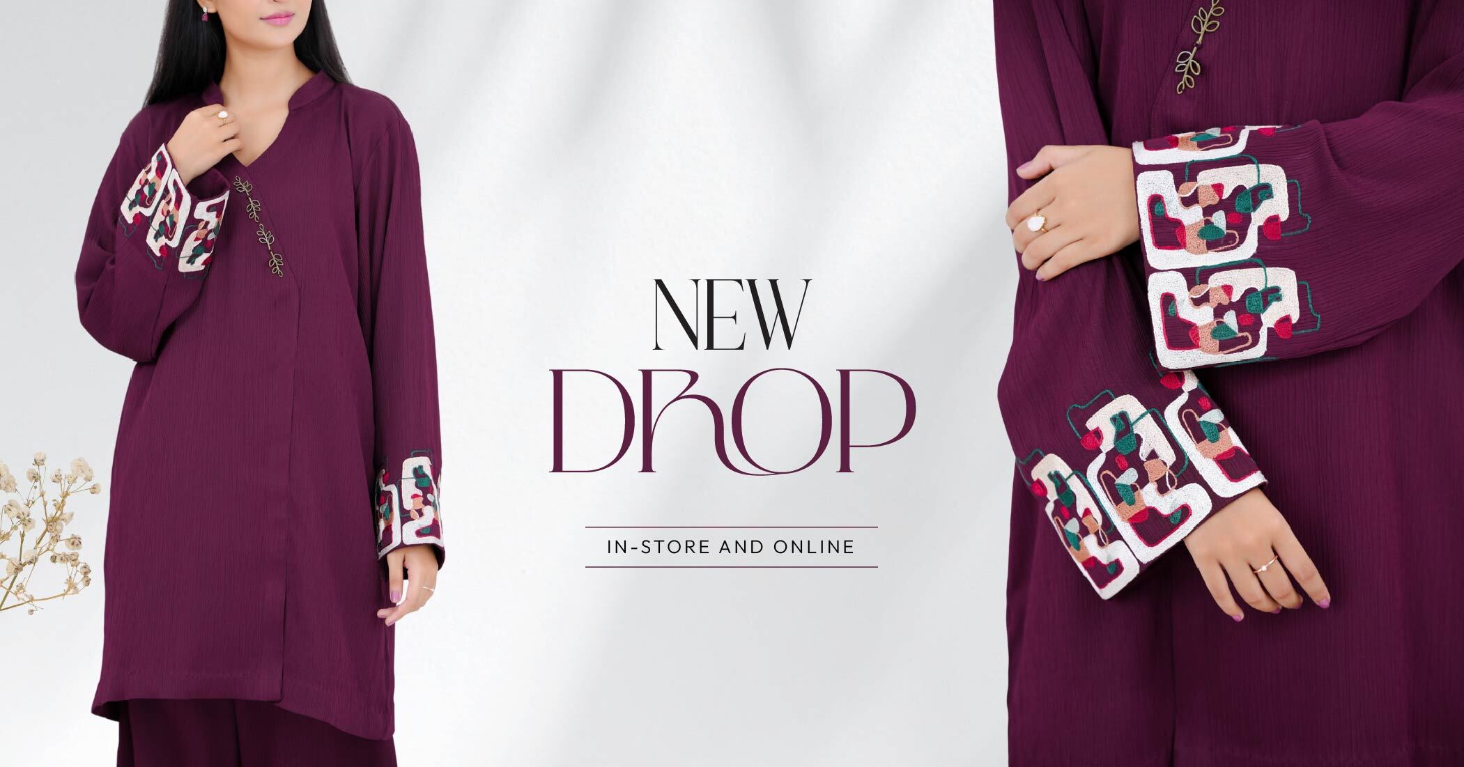 Stitched Embroidered Co-Ord Set in Textured Stretchable Fabric by Winara