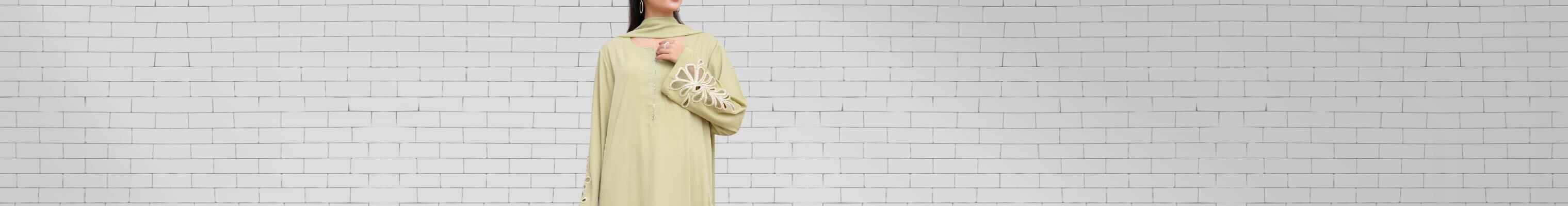 3 Piece Light Green Embroidered Silk Suit by Winara